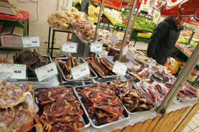 A man shops at a supermarket in east China's Shanghai, in this January 21, 2008 photo. China's March consumer price index rose an estimated 8.3 percent, with first-quarter inflation of about 8.0 percent, the deputy governor of the People's Bank of China, Liu Shiyu, said in Shanghai over the weekend. [Xinhua]