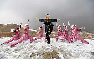 Sima Azimi frowns as she pirouettes in the snow, suspended for a moment against the sky on a hill overlooking Kabul and above the conservatism of contemporary Afghanistan.