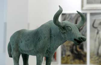Photo taken on May 18, 2014 shows a bronze sculpture of yak displayed at the world's first yak museum, Yak Museum of Tibet, in Lhasa, capital of southwest China's Tibet autonomous region. Having been domesticated for thousands of years on the Qinghai-Tibet Plateau, the yak is the most important animal to Tibetan families, since it is a source of meat, milk, fiber and fuel for fires. The museum, with exhibitions focusing on the origin and domestication of yaks, and yak-themed artwork, opened on Sunday, which is also the International Museum Day. [Photo/Xinhua]