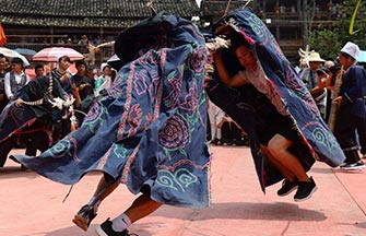 His ink works back then placed women figures, either semi-naked or in flashy costumes, against the backdrop of a landscape that is painted in the tradition of shanshui. His underlying idea was to speak out against distortion of values in the pursuit of materialism.