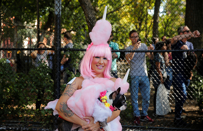Alex Wer, also known as the king of pumpkin art, takes a photo with his carved pumpkin on Oct 22, 2017. [Photo/IC] |