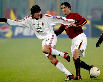 AS Roma's Christian Panucci (R) challenges AC Milan's Brazilian Ricardo Kaka during their Serie A soccer match at the Olympic Stadium in Rome January 6, 2004. [Reuters]