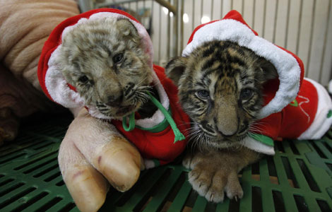 A Maine Coon cat stares at a camera during an international cat exhibition held in Rishon Lezion, near Tel Aviv, Israel, Dec 17, 2011. [Photo/Agencies]