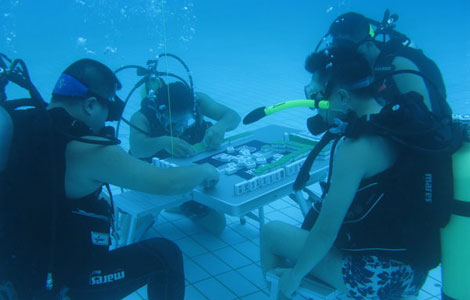 Novak Djokovic of Serbia hits a return to Stanislas Wawrinka of Switzerland during their men's semifinal singles tennis match at the ATP World Tour Finals at the O2 Arena in London, Nov 10, 2013. [Photo/Agencies] |