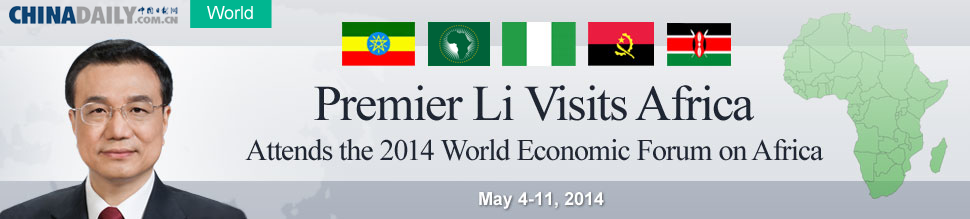 Premier Li Keqiang is scheduled to meet Angolan President Jose Eduardo dos Santos and hold a seminar with Chinese firms and overseas Chinese.